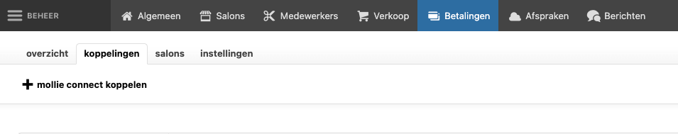 Om klanten via een betaalverzoek te laten betalen, is koppeling met Mollie, MultiSafepay of CCV van het bedrijf vereist binnen Salonhub.
