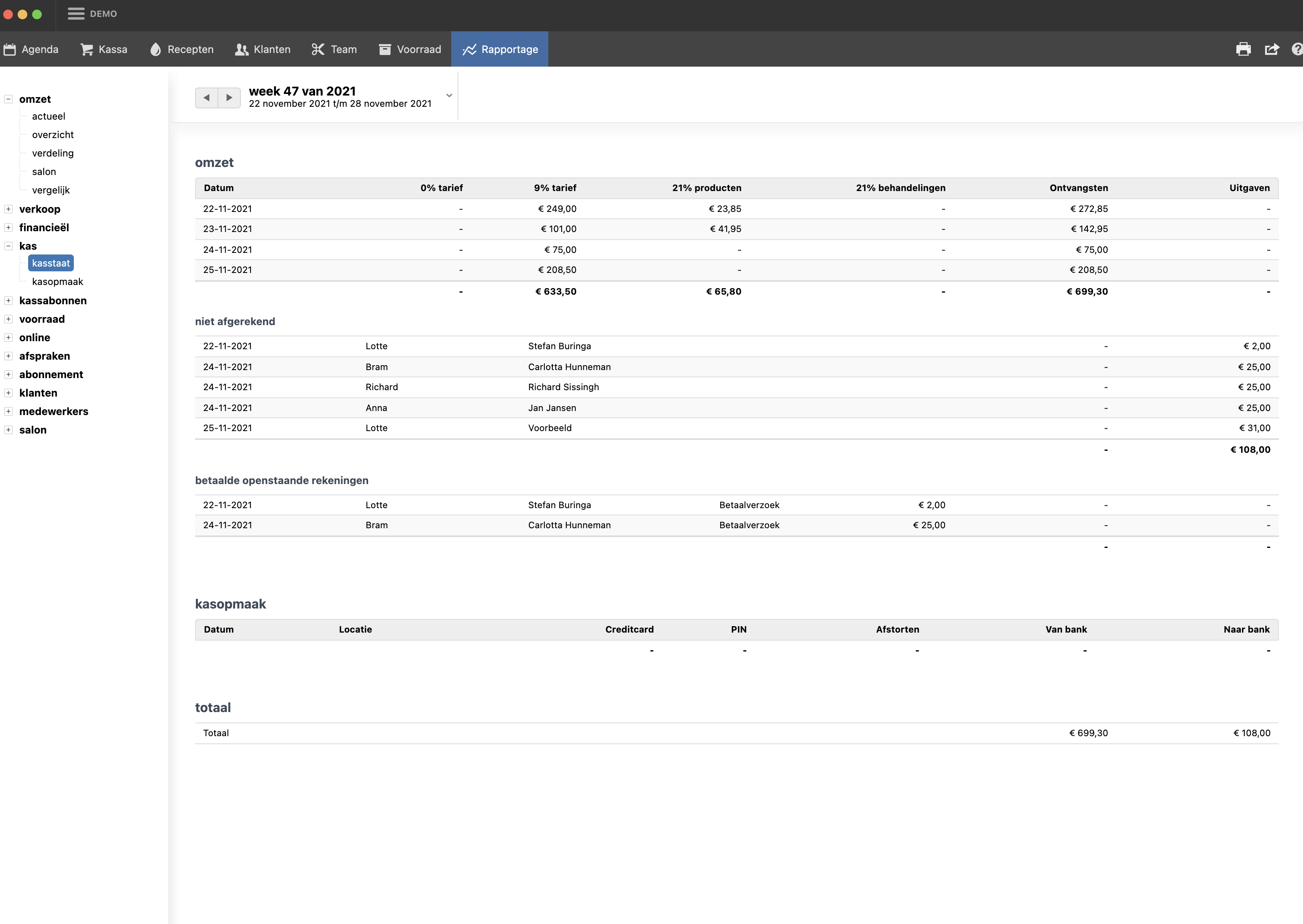 Uiteraard worden de betaalverzoeken ook verwerkt binnen de rapportage. Zo zijn de volbrachte betaalverzoeken zichtbaar op de kasstaat.