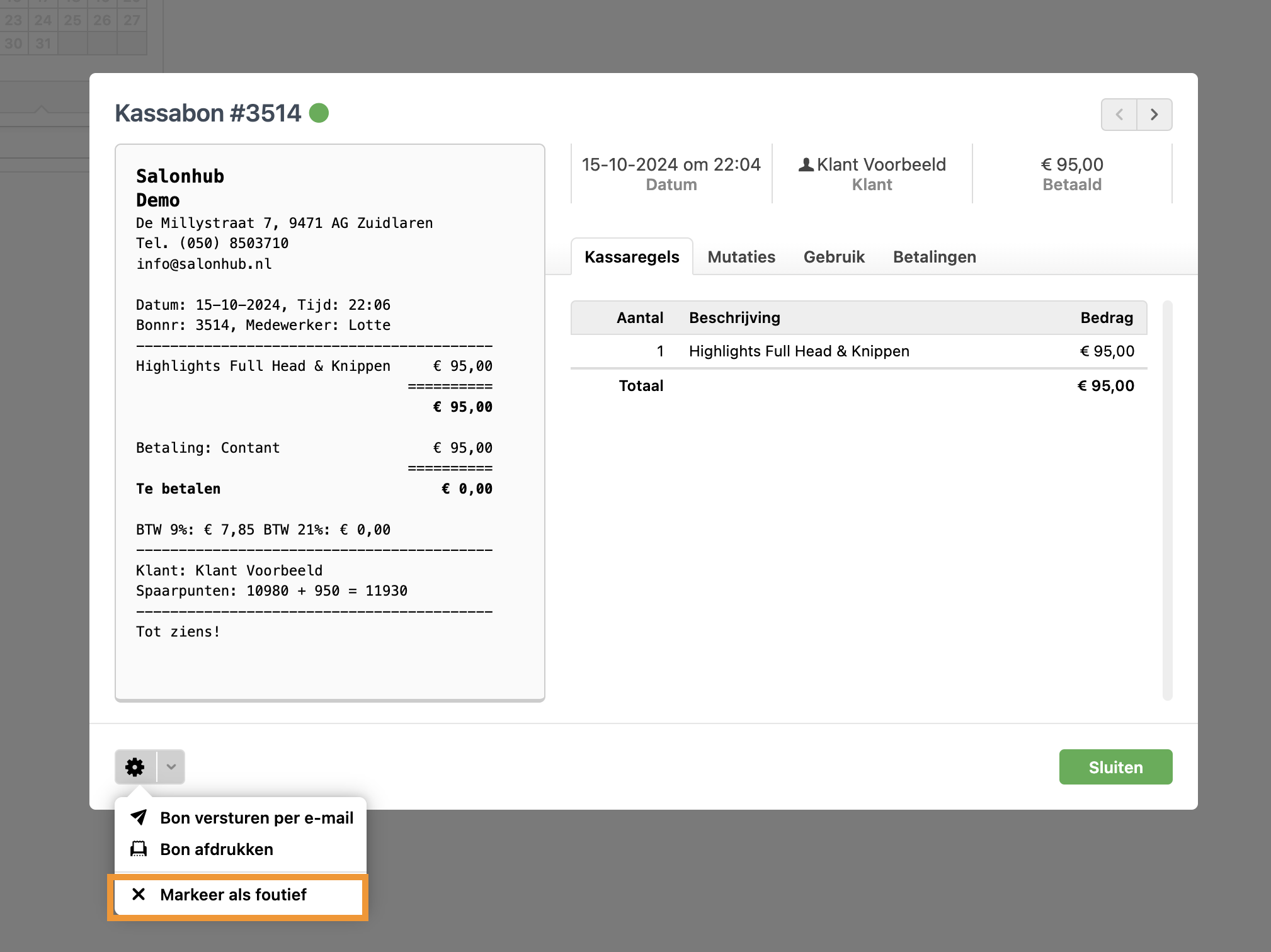- Markeer als foutief: Klik op de bon en selecteer de optie “markeer als foutief”.