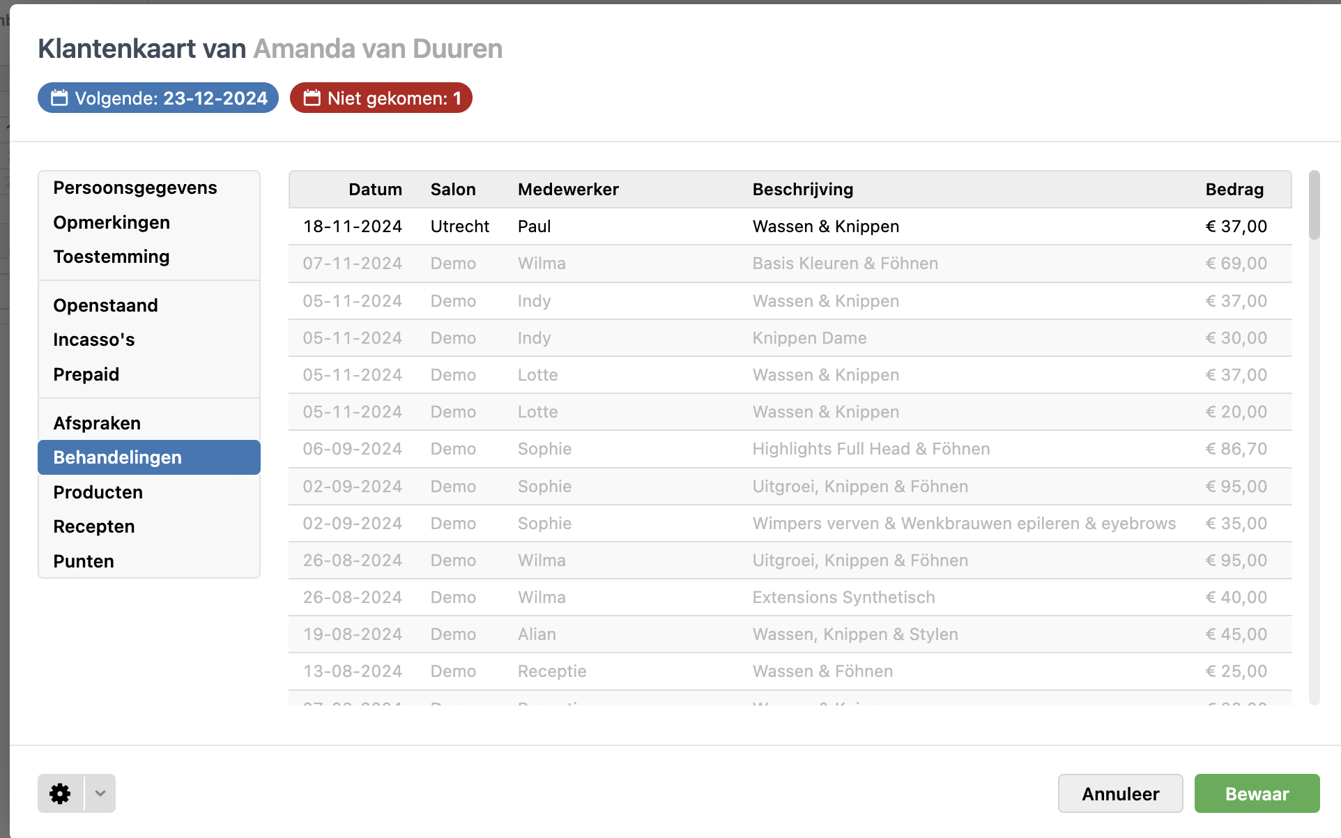 Bij het maken van een afspraak, het afrekenen of in het tabblad klanten kan een klantenkaart worden gezocht. Met de knop Iedereen wordt ook gezocht in andere filialen uit hetzelfde Salonhub account en komen de klantenkaarten van de andere filialen naar voren. Dit is handig wanneer een klant al een klantenkaart heeft in een ander filiaal.