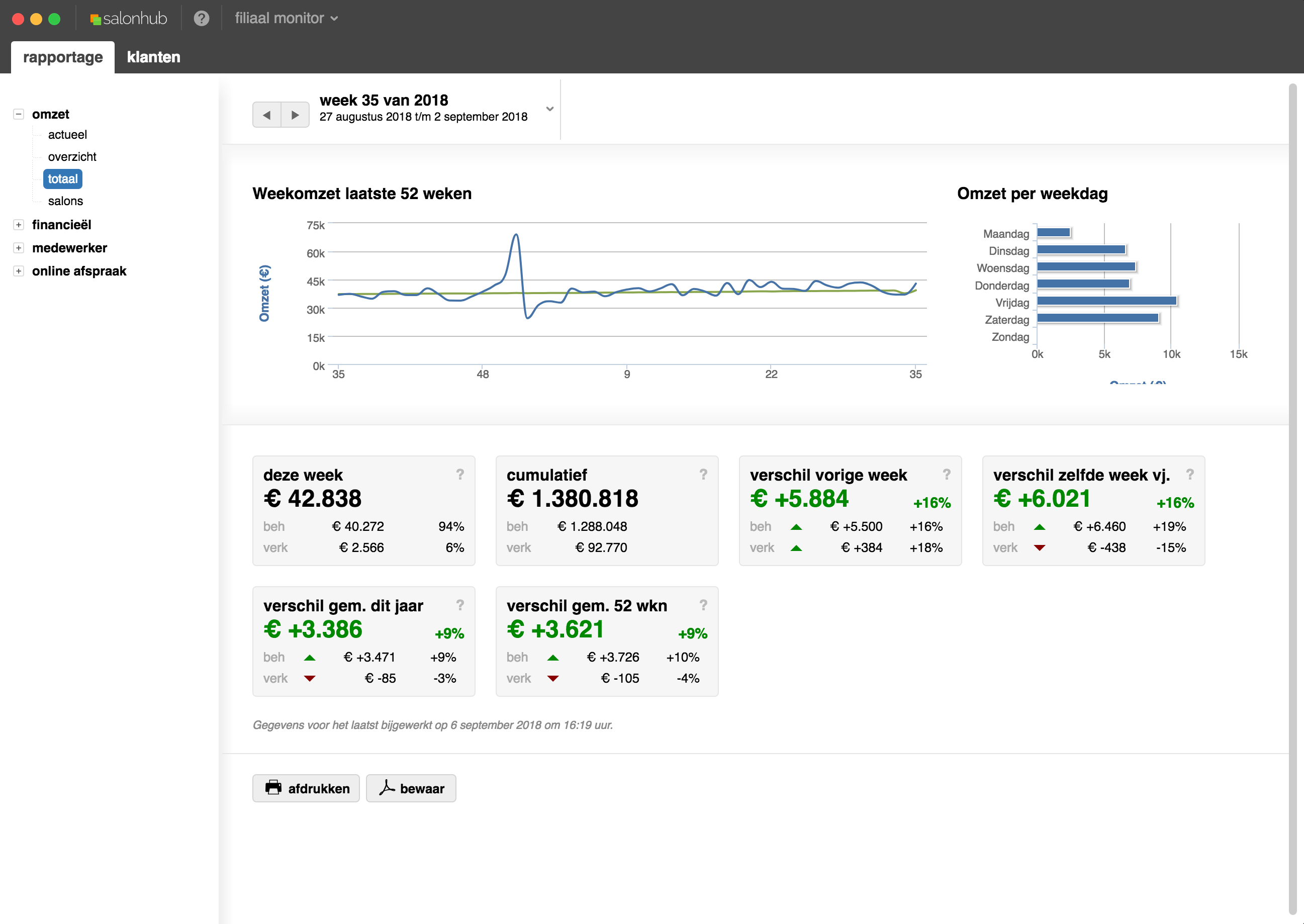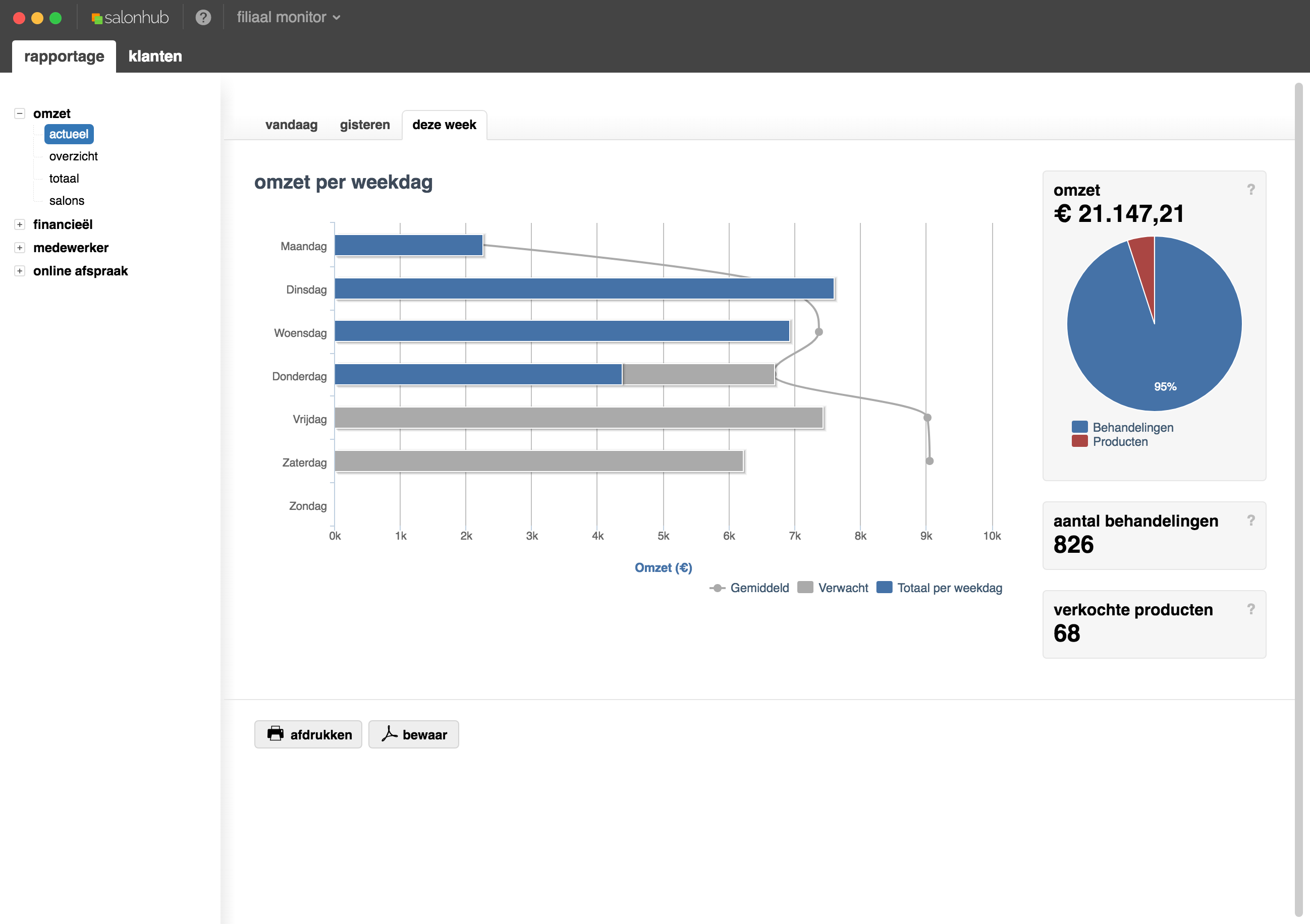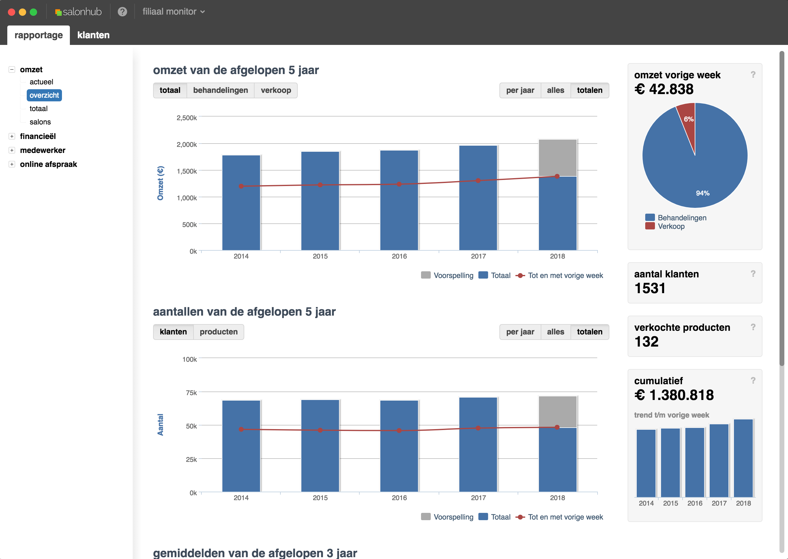 De filiaal monitor bestaat uit een aantal rapportages die inzicht geven in de omzet ontwikkeling van alle filialen samen en individueel.