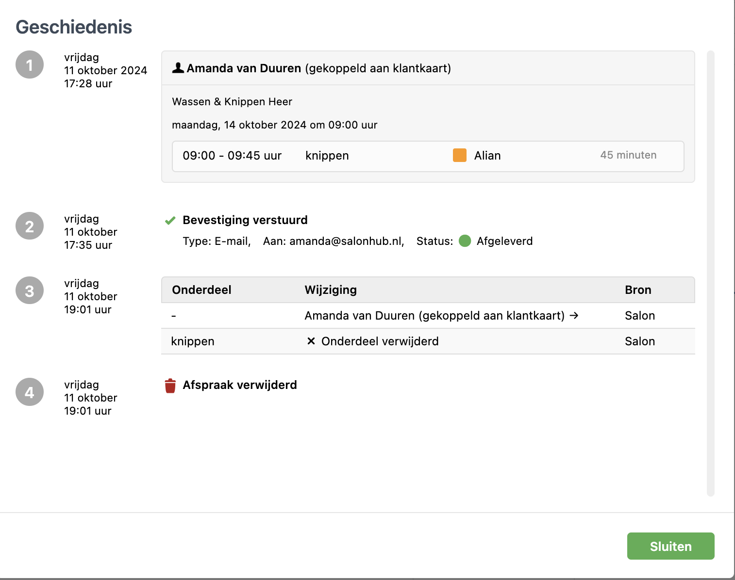 In Salonhub wordt deze wel automatisch verzonden bij het verwijderen van een afspraak.