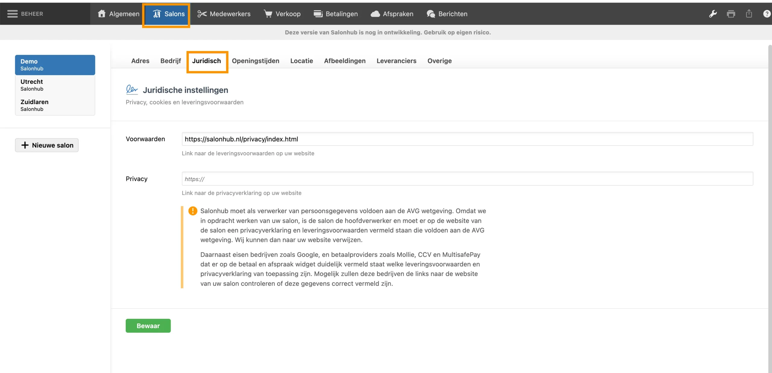 Geen privacyverklaring ingevuld? Dan verwijzen we naar die van Salonhub.