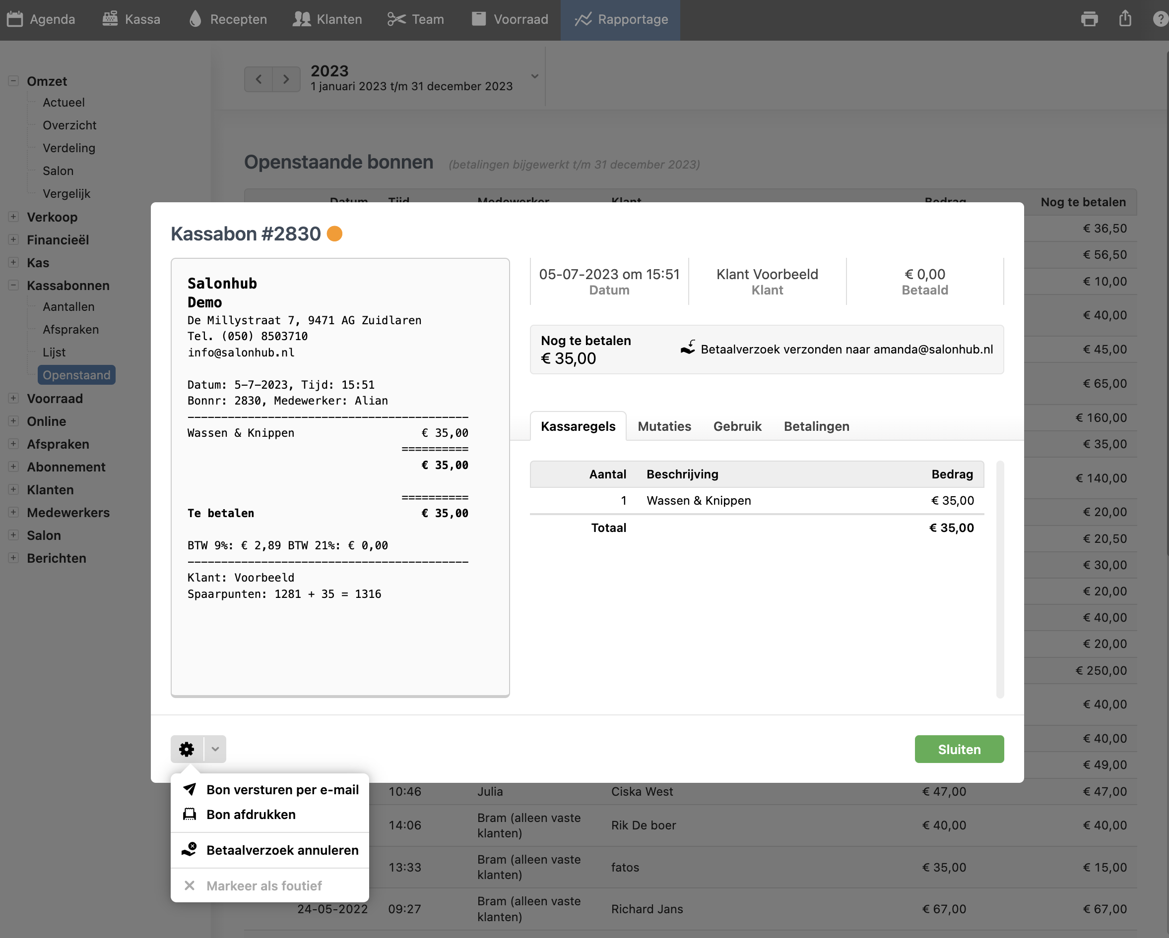 Salonhub rapportage afspraken: Inzicht in kassabonnen en transacties