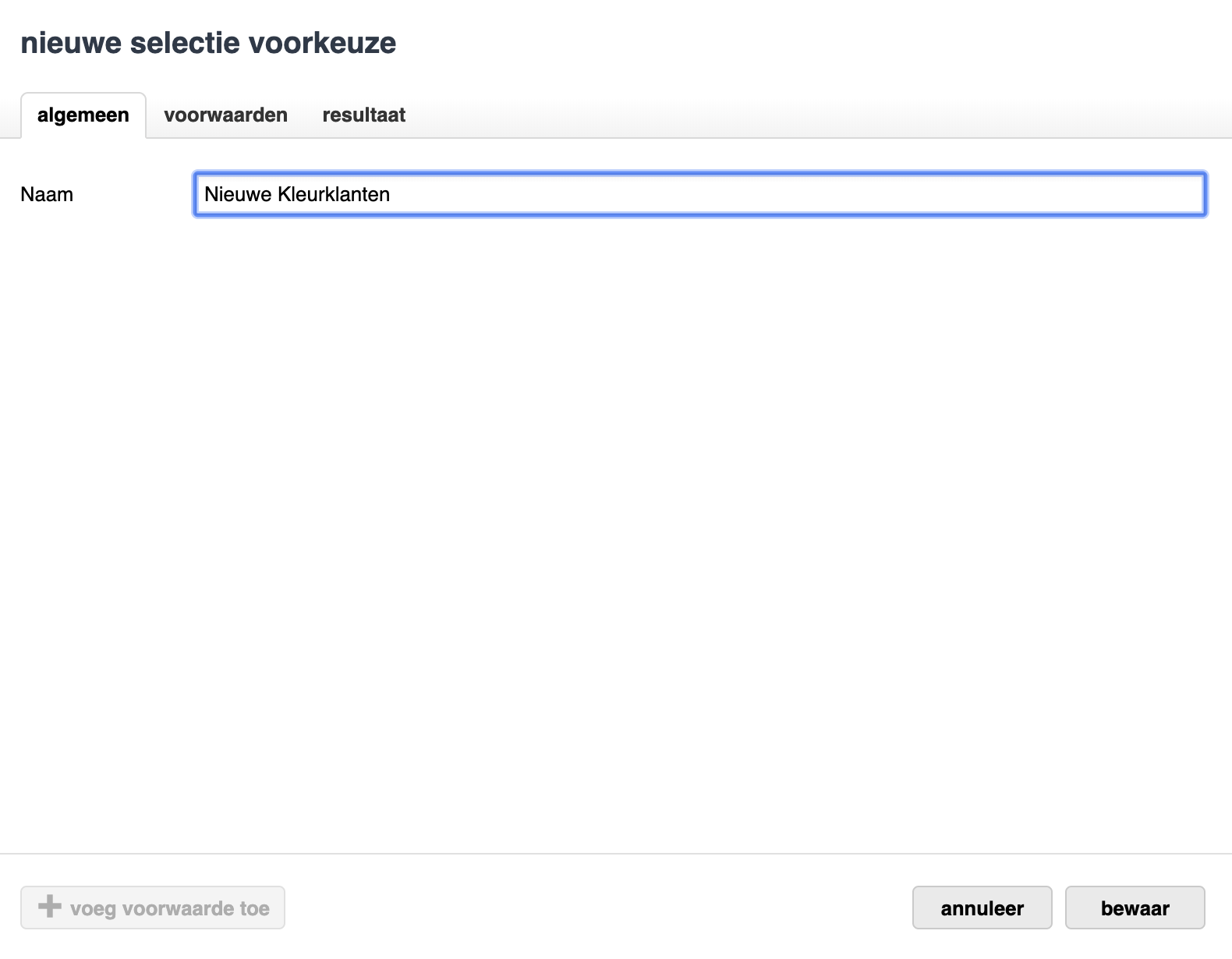 In het tabblad Resultaat wordt zichtbaar welke klanten in de selectie naar voren komen. Klik op Bewaar om alles op te slaan