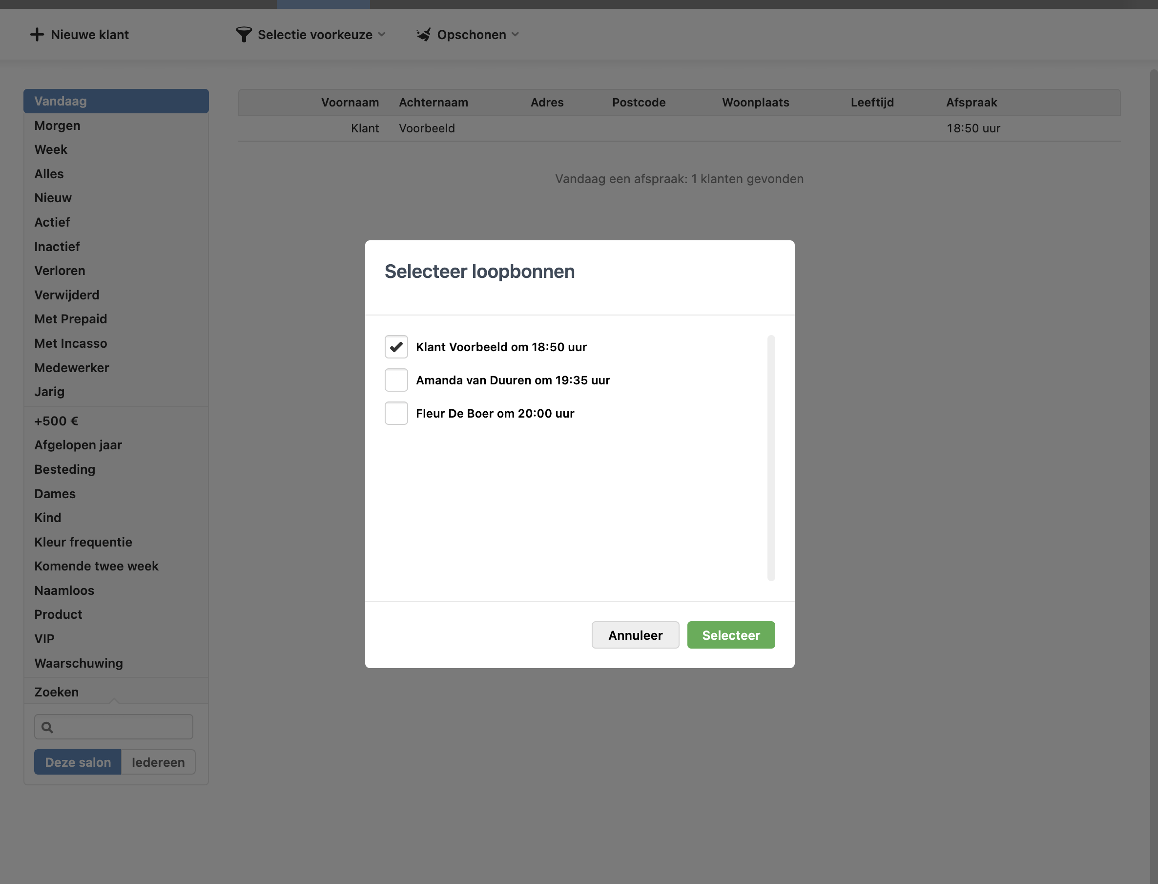 Via het tabblad Klanten op salon niveau is de functie “loopbon” beschikbaar.