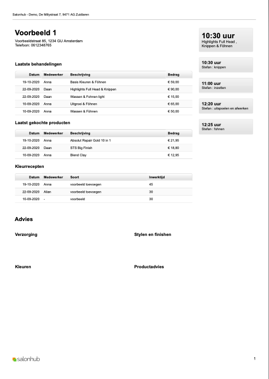 Een loopbon is een gedetailleerd overzicht van de behandelingen en producten die een klant tijdens een bezoek aan de salon heeft ontvangen. Deze loopbon wordt vaak gebruikt als een intern hulpmiddel voor medewerkers om duidelijkheid te hebben over de gemaakte afspraken, de uitgevoerde behandelingen of de verkochte producten voordat de daadwerkelijke betaling plaatsvindt.