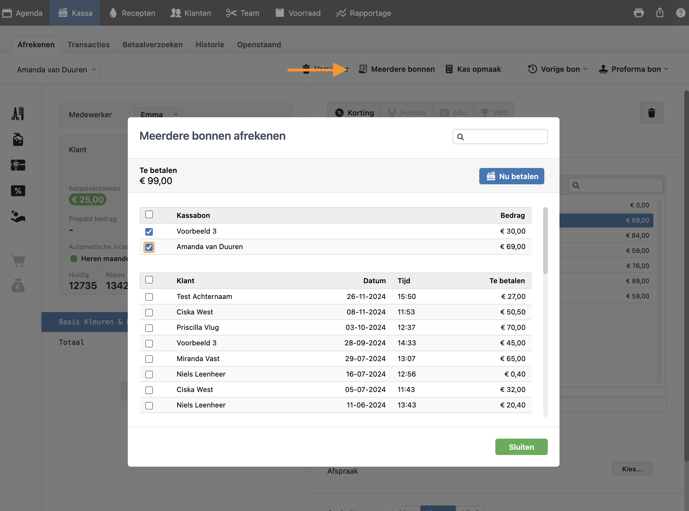 Openstaande kassabonnen tegelijk afrekenen met nieuwe bon