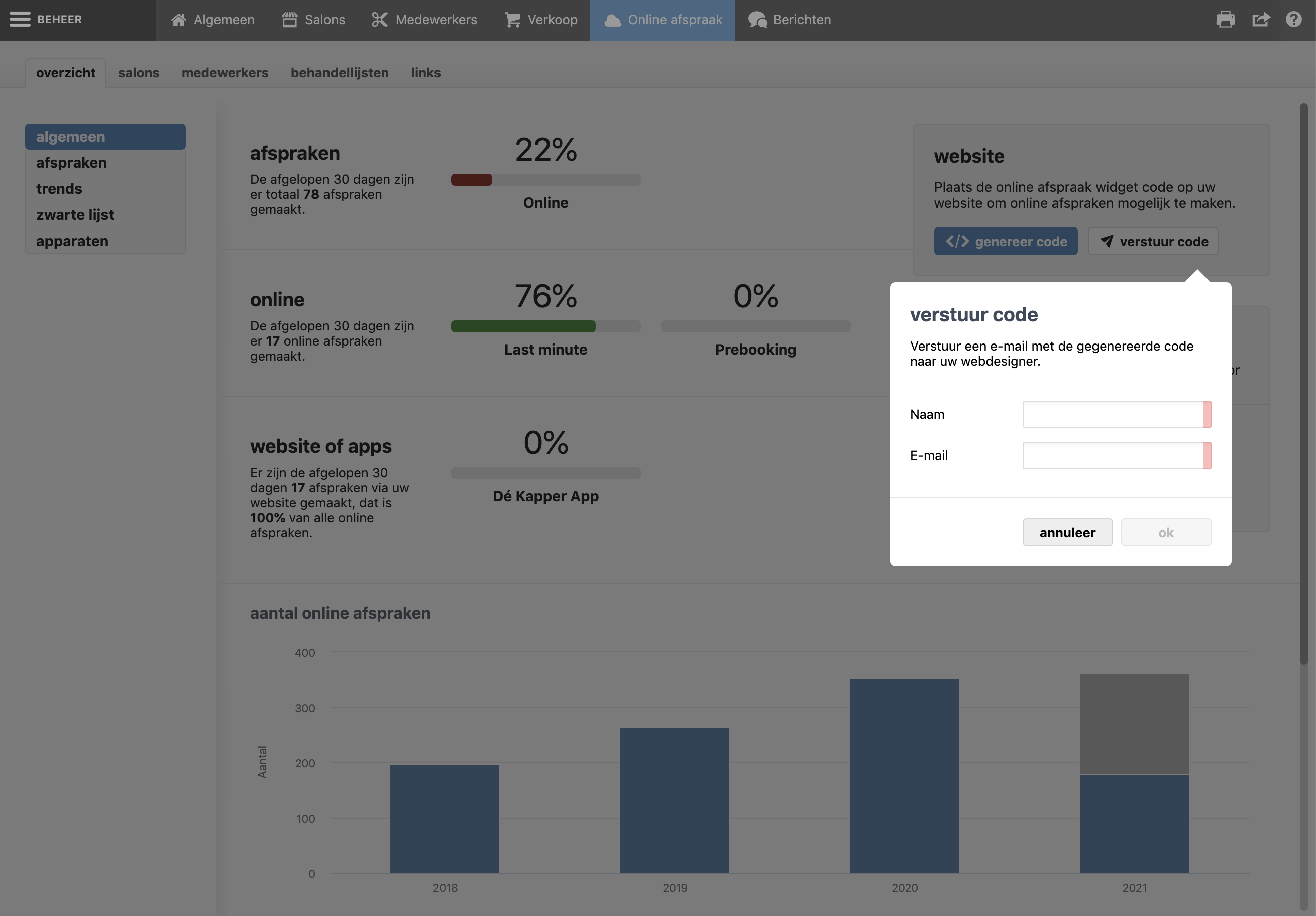 code versturen in salonhub