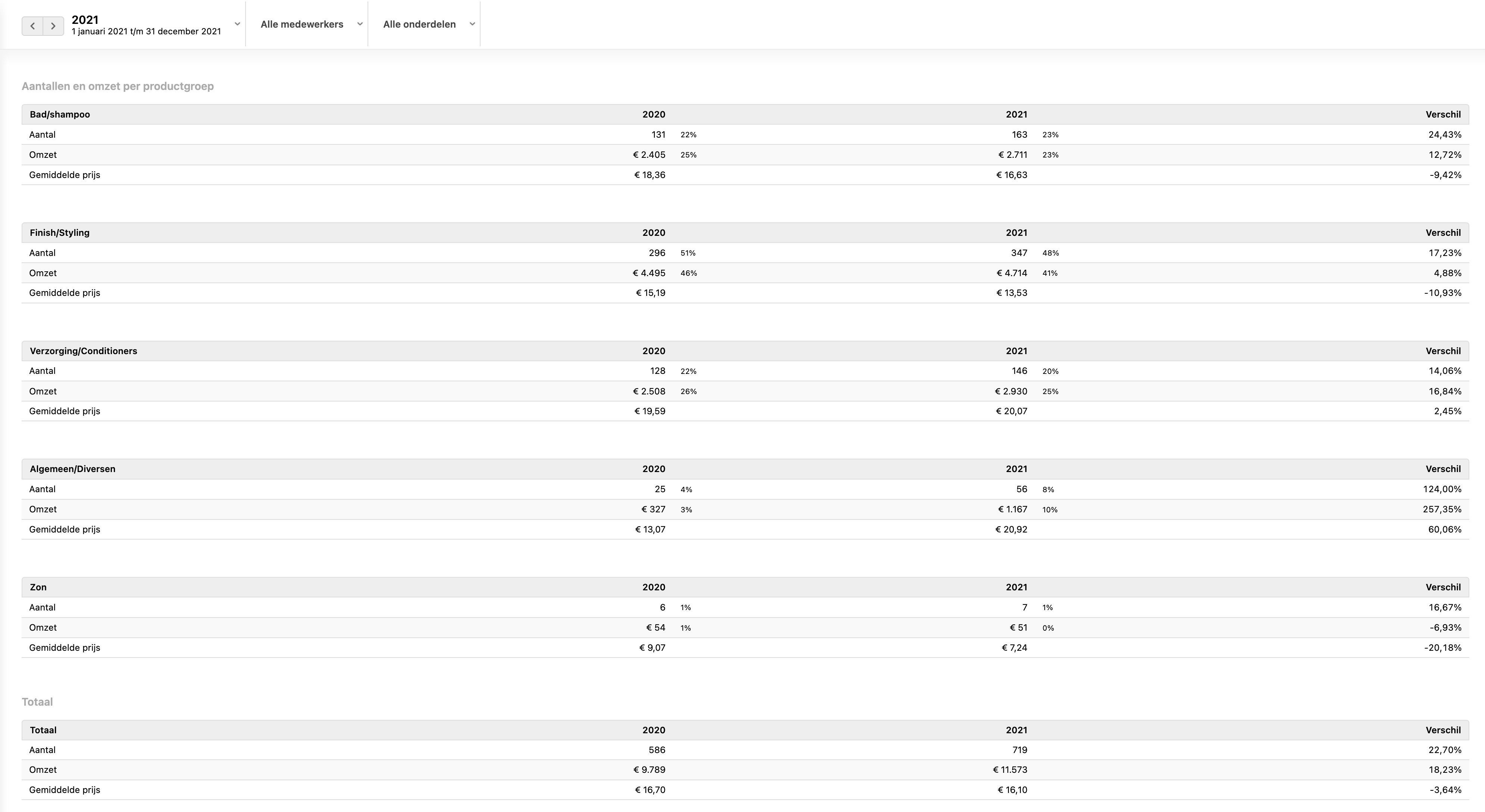 Salonhub rapportage productgroepen: Inzicht in verkoopprestaties