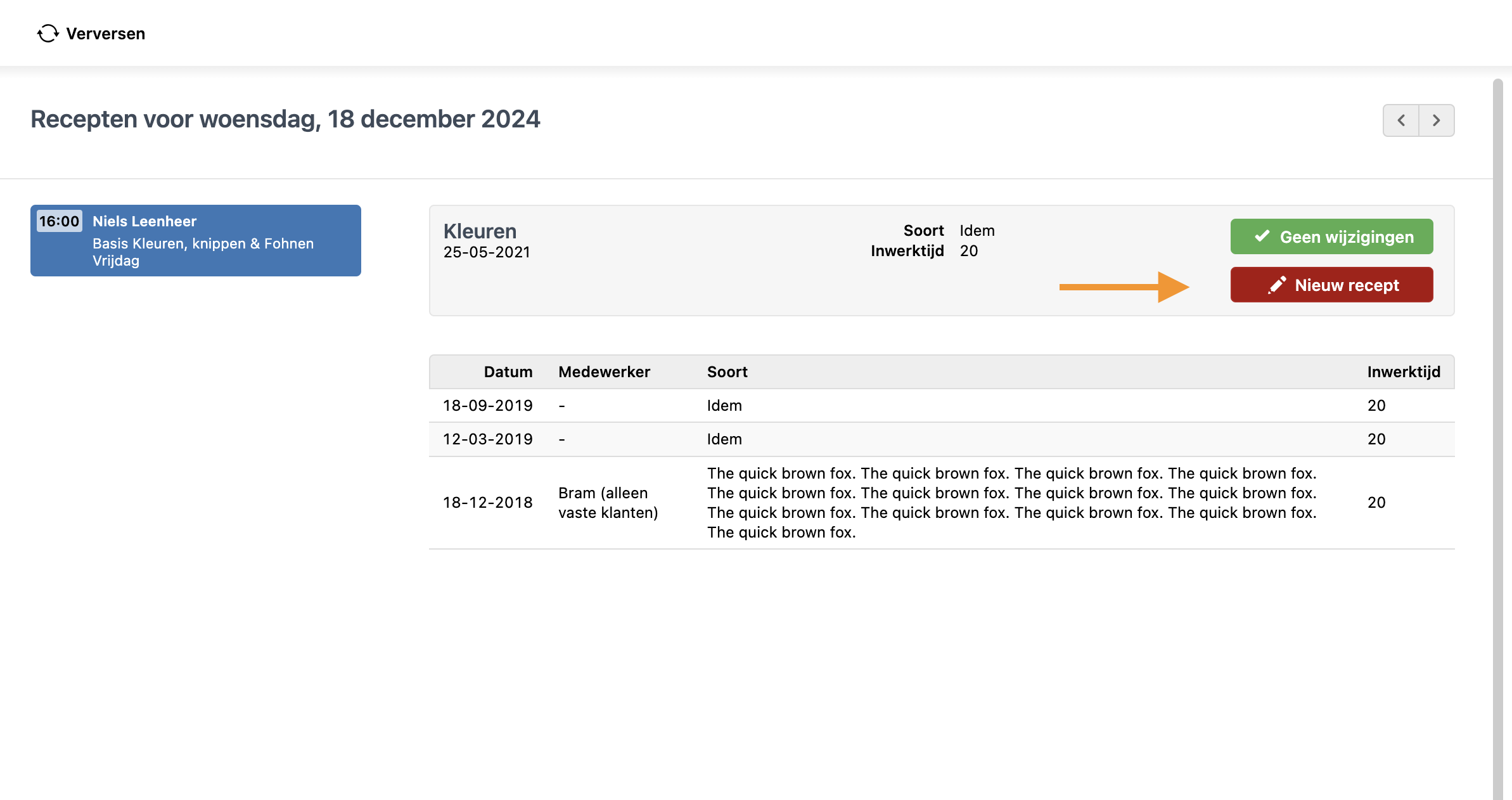 Recepten kunnen op meerdere plekken worden ingevoerd. Er is een handige functie beschikbaar waarmee alle openstaande recepten per dag worden weergegeven. Klanten die die dag de salon hebben bezocht voor een behandeling waarbij een recept hoort, worden overzichtelijk weergege