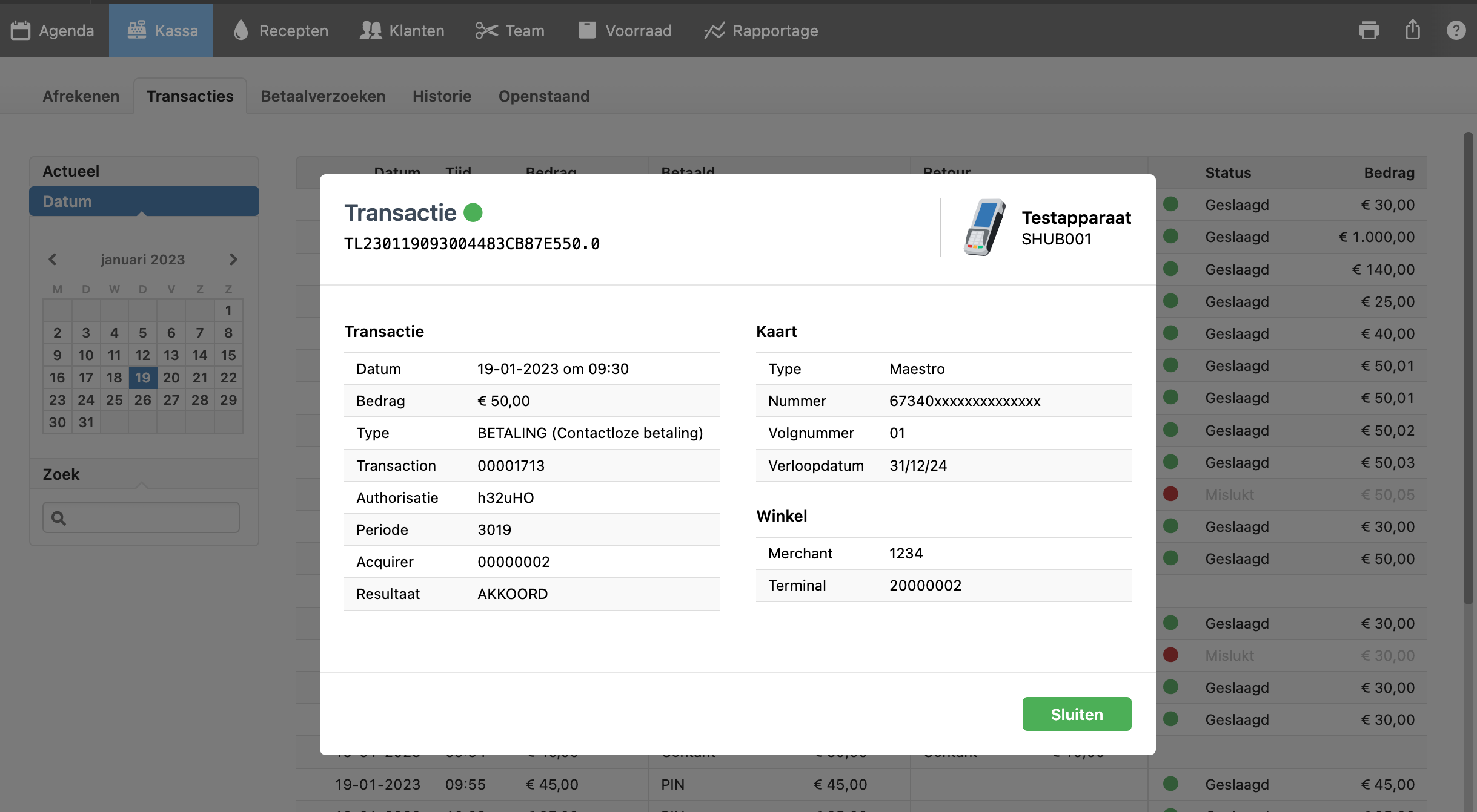 Voor gebruikers van Salonhub Pay is het bovendien mogelijk om de transactie zelf nader te bekijken.