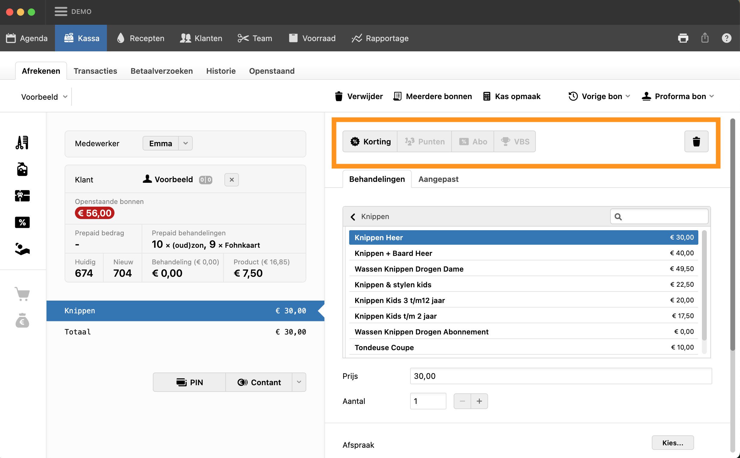 Functietoetsen Korting, Punten, Abonnement en VBS zijn met icoontjes vindbaar