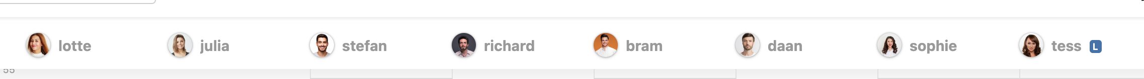 Boven in de agenda worden de medewerkers weergegeven met een kleine foto.